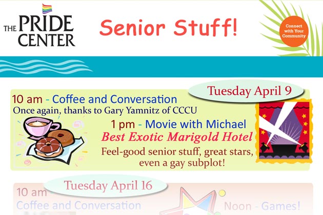April 9 – Coffee and Conversation at 10 am and at 1pm Movie with Michael “Best Exotic Marigold Motel”.