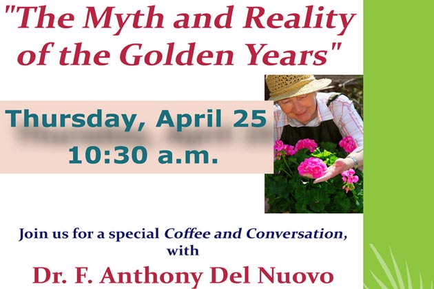 April 25th – Coffee and Conversation at 10:30 with Dr F Anthony Del Nuovo “The Myth and Reality of the Golden Years”.