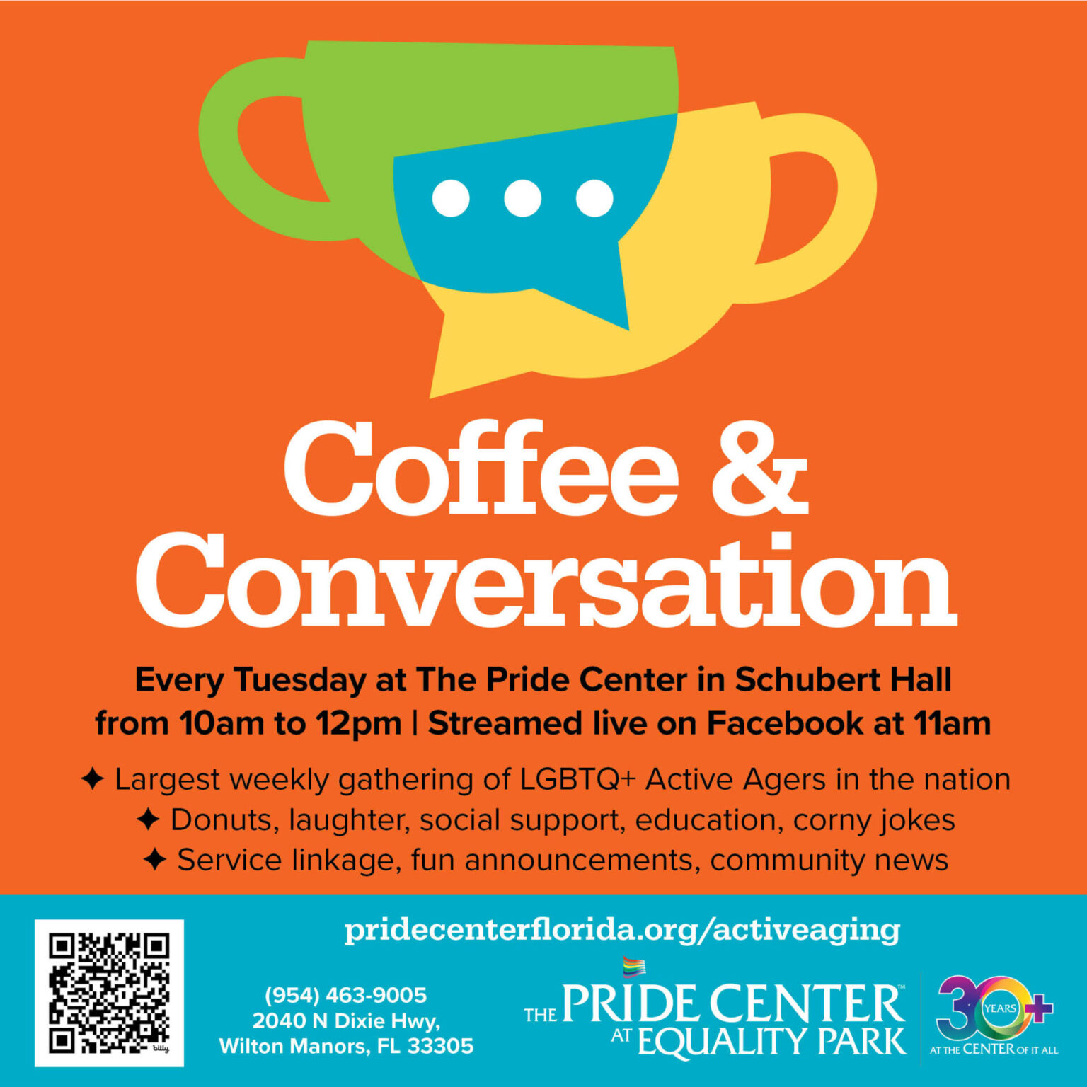 ![]() Coffee & ConversationSeptember 2, 2025 FREE! Every Tuesday at The Pride Center in Schubert Hall from 10am to 12pm Schubert Hall The Pride Center 2040 N. Dixie Hwy, Wilton Manors, FL 33305 954-463-9005 |