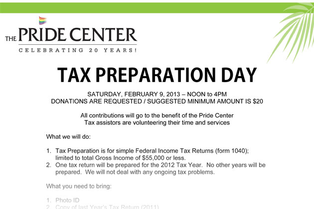 All contributions will go to the benefit of the Pride Center. Tax assistors are volunteering their time and services