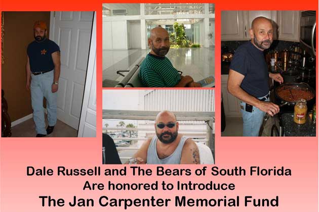 Dale Russell and The Bears of South Florida are Honored to Introduce The Jan Carpenter Memorial Fund. Philantropy was very important of Jan Carpenter’s life. He served Boards of Non Profit Organizations, most recently serving as Vice President for The Bears of South Florida, a local charity that raises funds to donate to other local LGBT charities. To date BOSFL has donated over $65,000 to the local LGBT community.