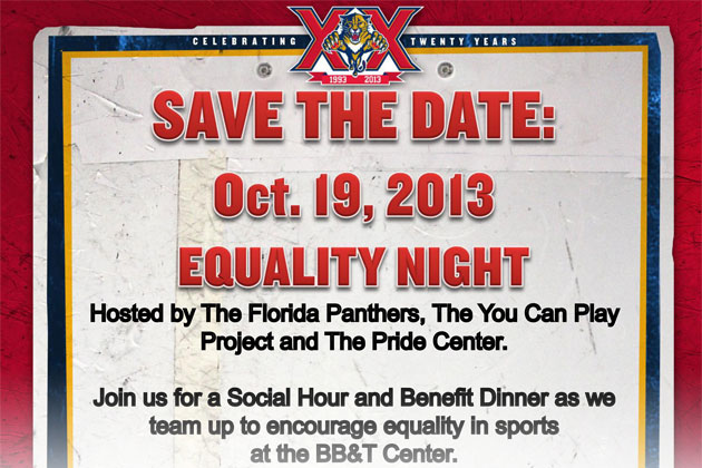 Join The Florida Panthers & The You Can Play Project for a game promoting equality in sports and benefiting The Pride Center.