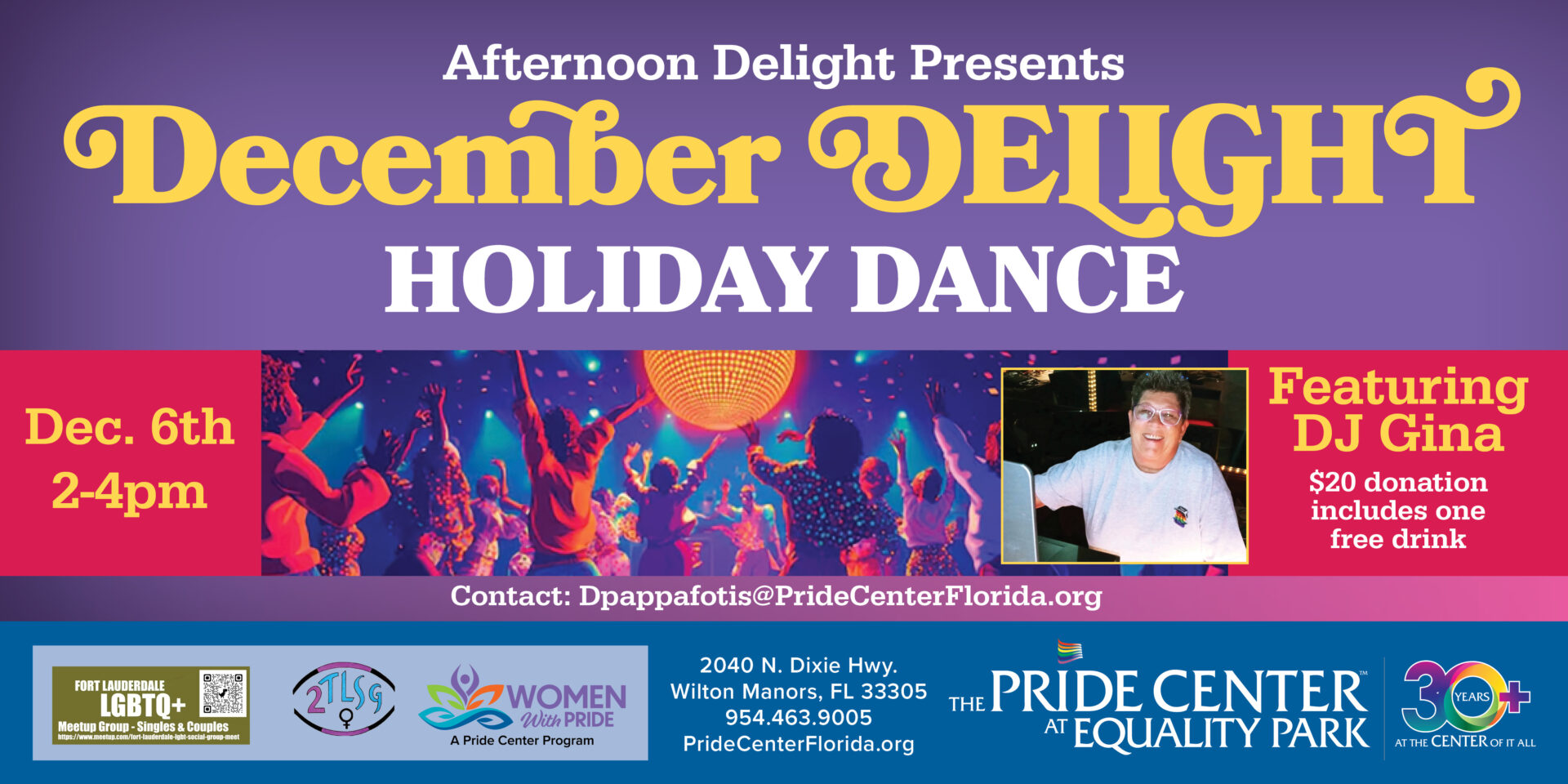 Women with Pride and The Second Tuesday Lesbian Social Group present December Delight Holiday Dance. Join us for a festive afternoon filled with music, laughter, and community as DJ Gina keeps the dance floor alive with an upbeat mix of crowd-pleasing hits. Come dressed to shine, bring your friends, and celebrate the joy of the holidays together. Whether you’re out to dance the afternoon away or simply soak in the holiday cheer, this is the perfect way to kick off the season in style. Let’s make this holiday afternoon unforgettable—see you on the dance floor!