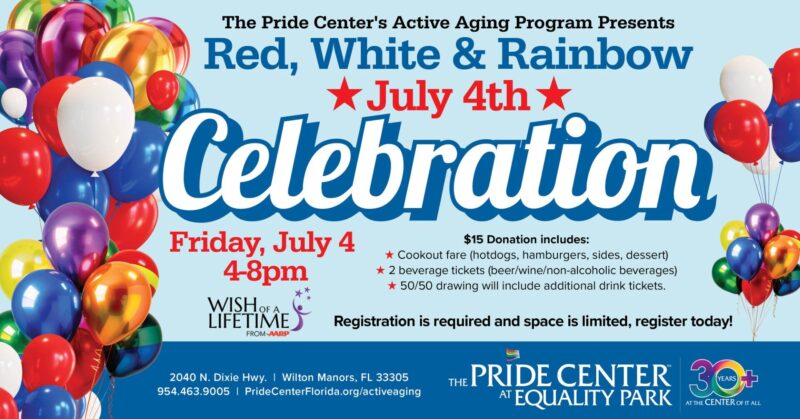 The Pride Center’s Active Aging Program presents Red, White & Rainbow: July 4th Celebration Celebrate Pride and Independence at our July 4th LGBTQ+ Cookout! Join us for an afternoon of good vibes, grilled favorites, cold drinks, and community fun. $15 Donation includes: Friday, July 4th from 4 to 8pm Registration is required and space is […]